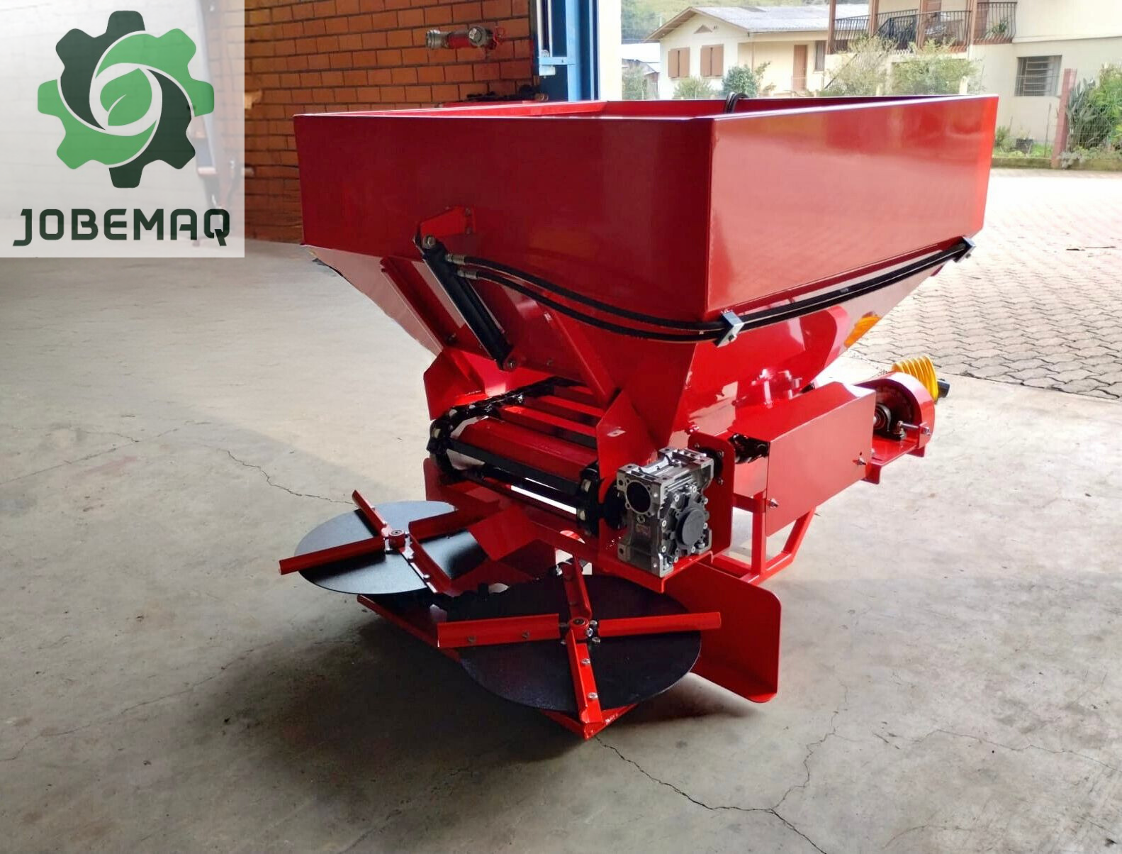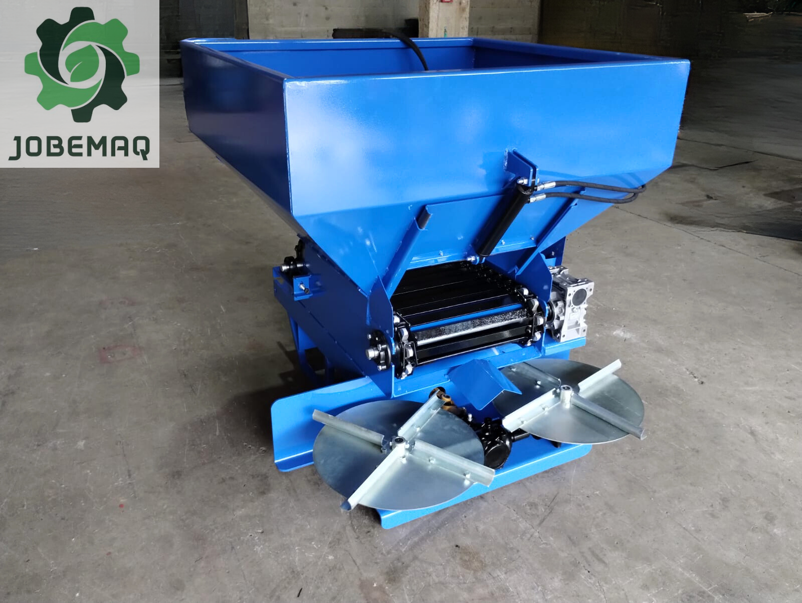 Distribuidor utilizado em tratores para facilitar a distribuição de adubo orgânico, calcário ou fertilizantes no solo.