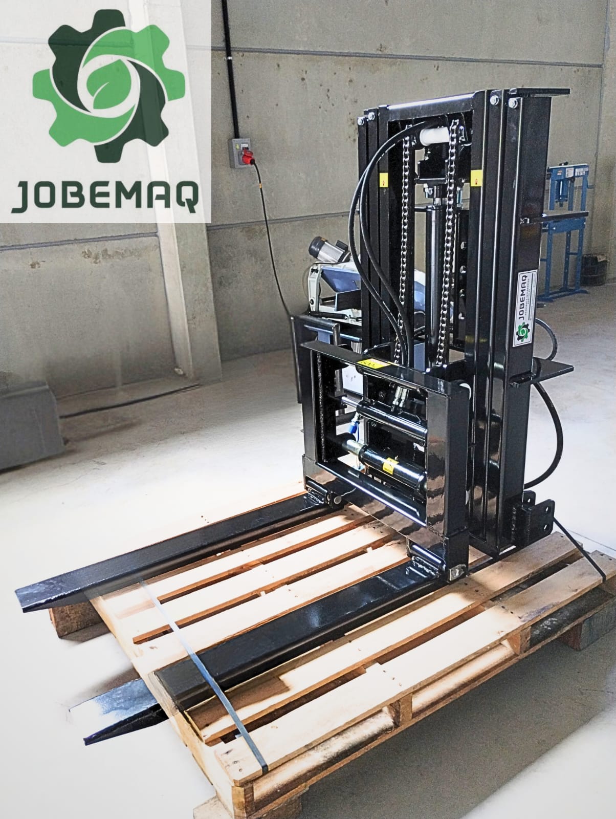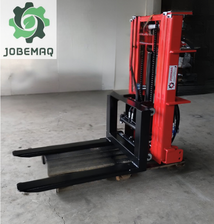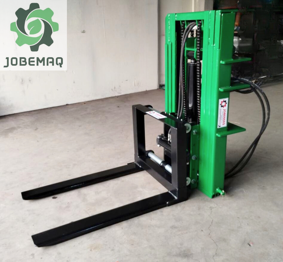 O garfo frontal hidráulico foi projetado para facilitar o produtor no transporte de bins, especialmente na colheita de frutas, onde é possível transportar um bins na parte frontal do trator otimizando as viagens necessárias.