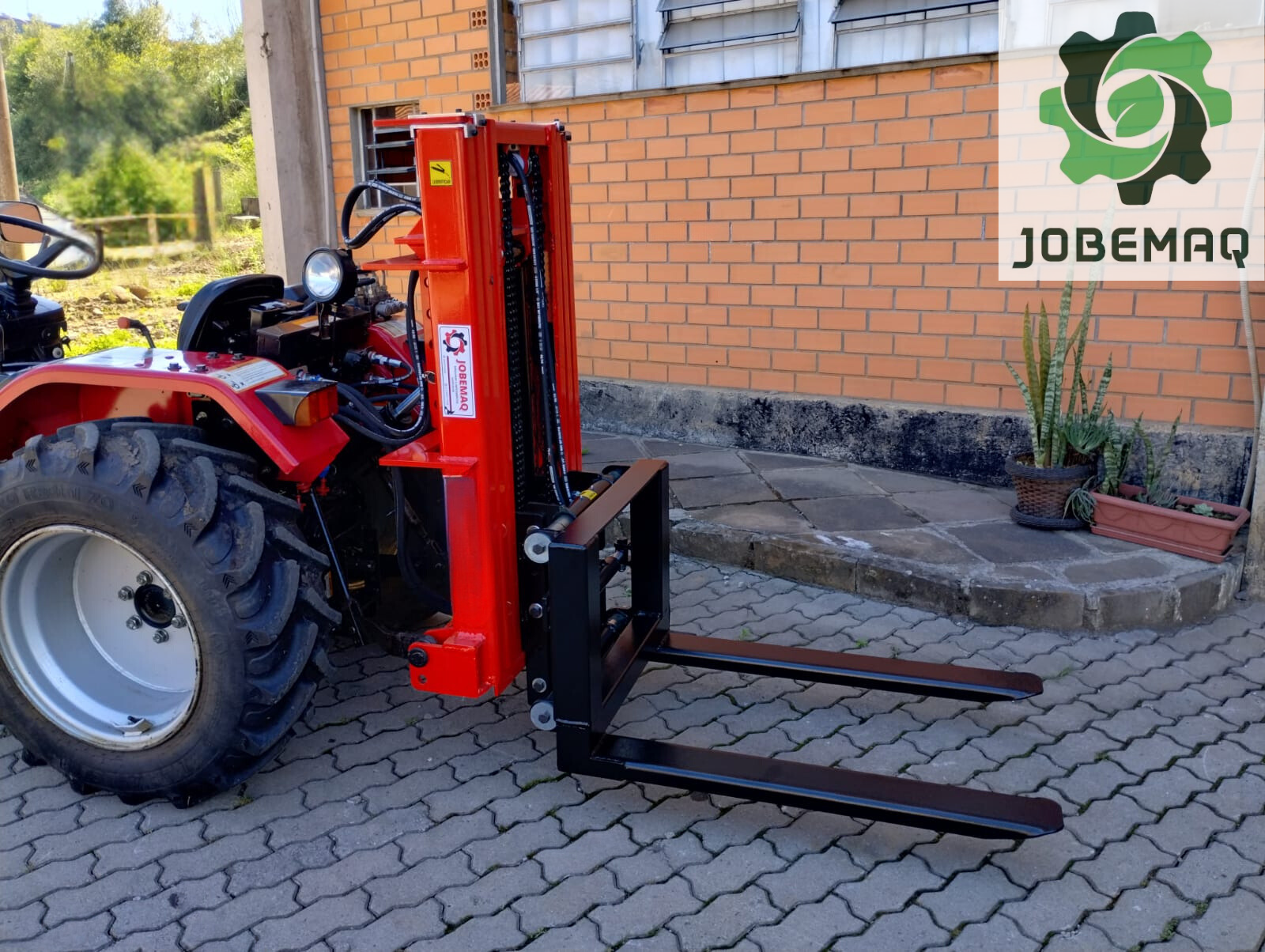 O funcionamento do garfo frontal é feito através de cilindros hidráulicos conectados nos comandos do trator.